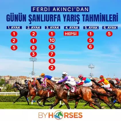 By Horses TV’nin sunduğu Ferdi Akıncı’nın yarış tahminleri ve günün Şanlıurfa yarışları detaylar haberimizde.