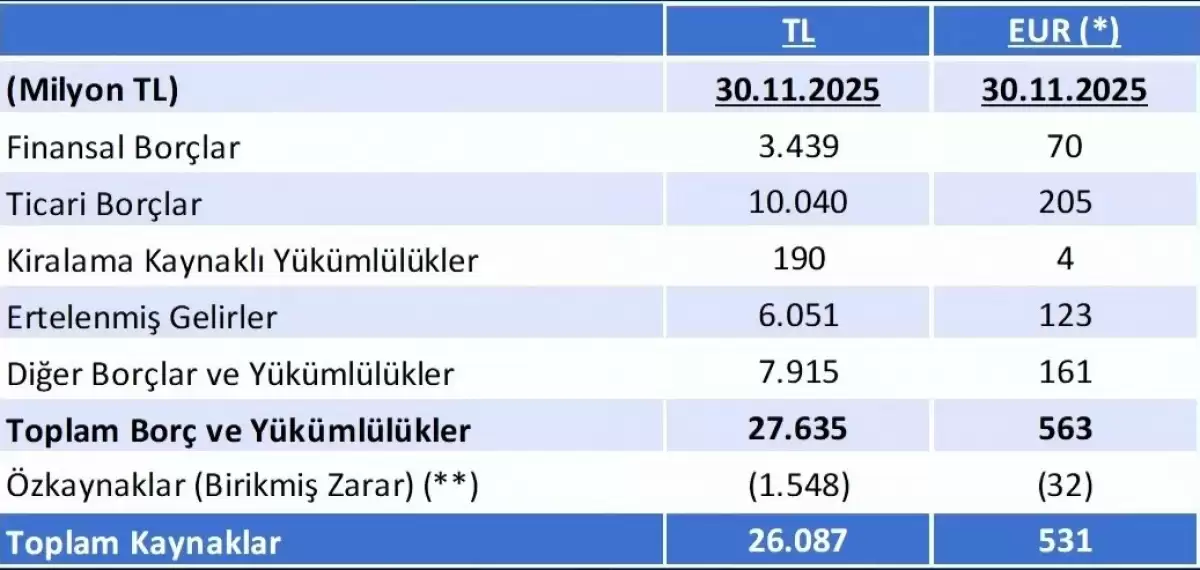 30 Kasım 2025 itibarıyla Fenerbahçe’nin toplam yükümlülüğünün 27 milyar 635 milyon TL olduğu açıklandı.