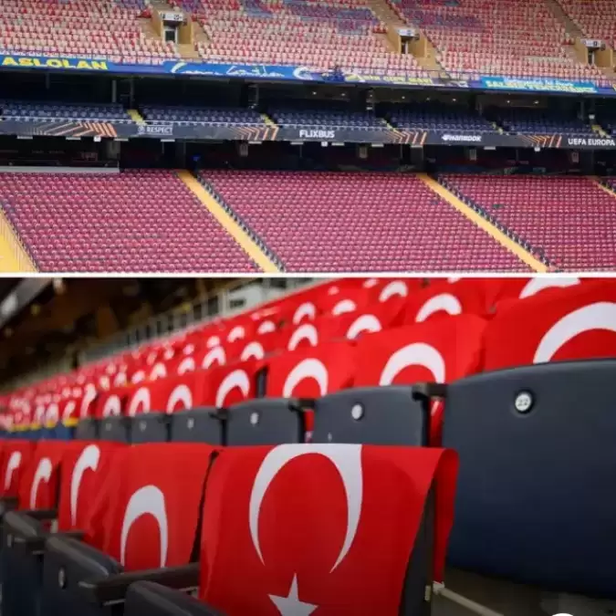 Fenerbahçe, bu akşam oynanacak Aston Villa maçı öncesinde anlamlı bir organizasyona imza attı. Sarı-lacivertli kulüp, karşılaşma öncesi stadyumu Türk bayraklarıyla donattı.