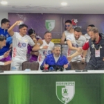 Erzurumspor FK oyuncuları basın toplantısını basıp kutlama yaptı