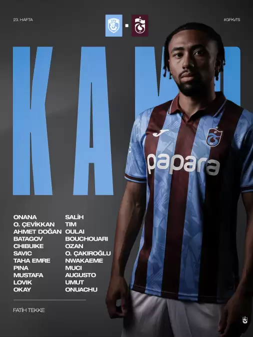 Trabzonspor’un, Gaziantep FK maçının kamp kadrosu belli oldu.