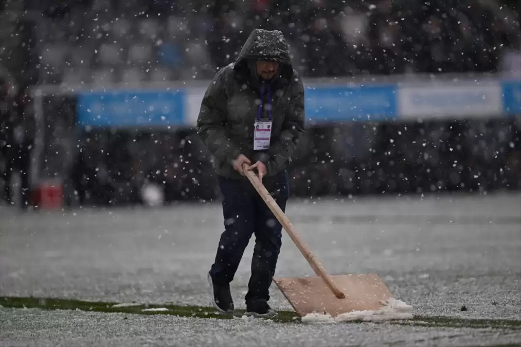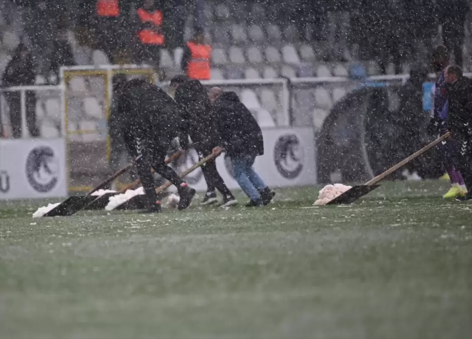 Hakem Asen Albayrak, kar yağışı dolayısıyla 21. dakikada maçı durdurarak ceza sahası çizgilerinin temizlenmesini istedi.