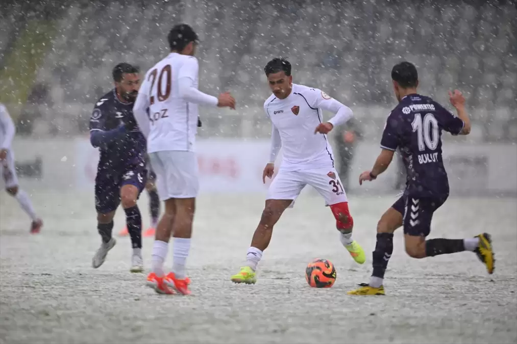 Aktepe Stadı’ndaki müsabaka, kar yağışı altında oynandı. Karşılaşma, sahada çizgilerinin belirginleştirilmesi için yapılan çalışmalar nedeniyle 7 dakika gecikmeli başladı.