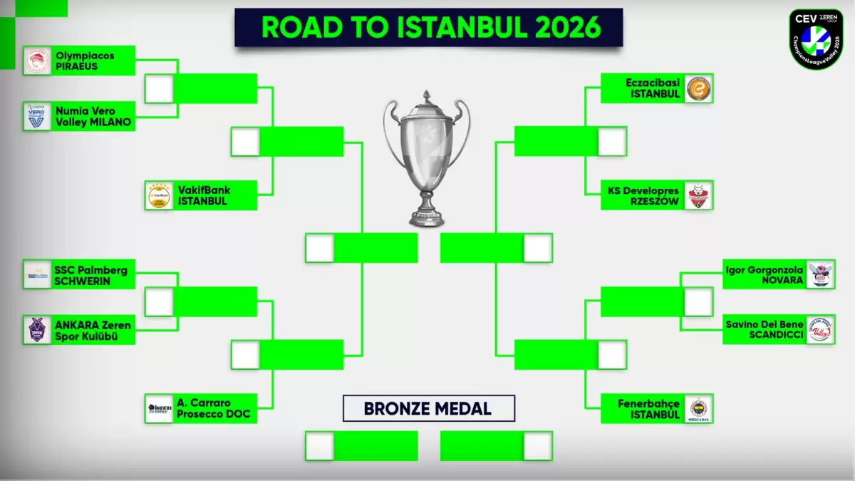 A Grubu’nu zirvede bitiren VakıfBank, Olympiakos (Yunanistan) ile Numia Vero Volley Milano (İtalya) arasındaki, B Grubu lideri Fenerbahçe Medicana da İtalyan ekipleri Igor Gorgonzola Novara ile Savino Del Bene Scandicci arasındaki play-off turu eşleşmesinin galibiyle çeyrek finalde karşılaşacak.